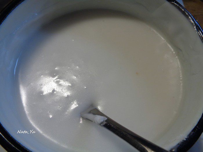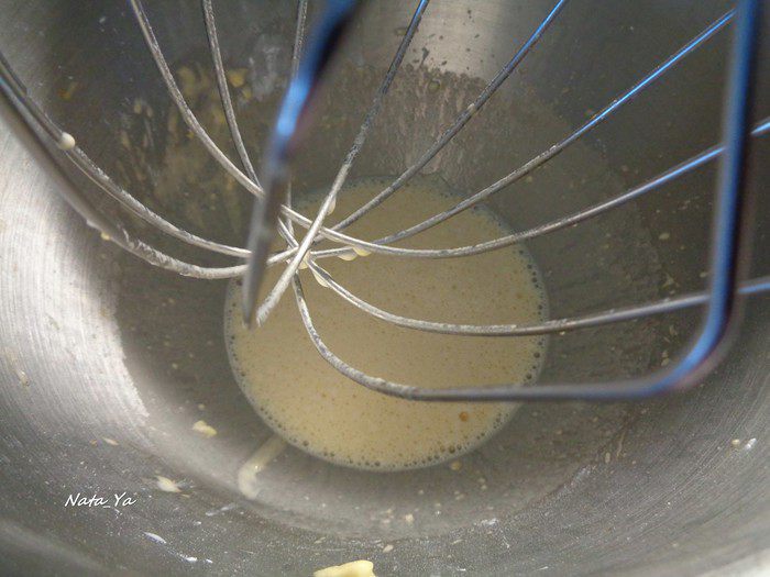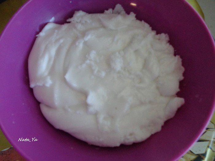 Начнем взбивать. На взбивание помады уйдет примерно 15-20 минут. Сначала она слегка побелеет.