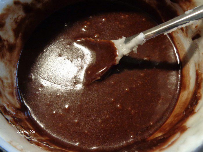 В оставшуюся 1/3 помады добавить какао-порошок. Размешать. Держим помаду все время на водяной бане, чтобы она не застыла.