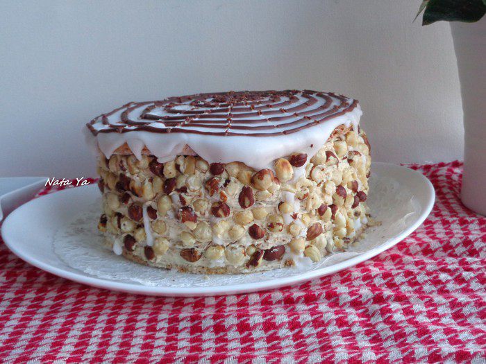 Эстерхази делается на базе тонких коржей из массы дакуаз - ореховой меренги. Классический вариант — с миндалем, возможны так же 50:50 миндаль-фундук или просто фундук. Я делала на фундуке 100%. И не пожалела ни капли! Фундук оказался гораздо ароматнее того же миндаля, например. Он сюда подходит лучше!