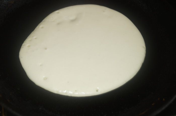 На сухой сковороде выпечь толстые блинчики.