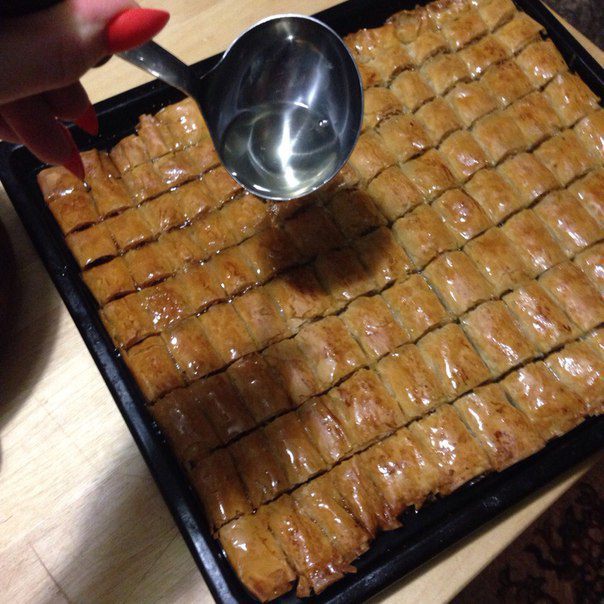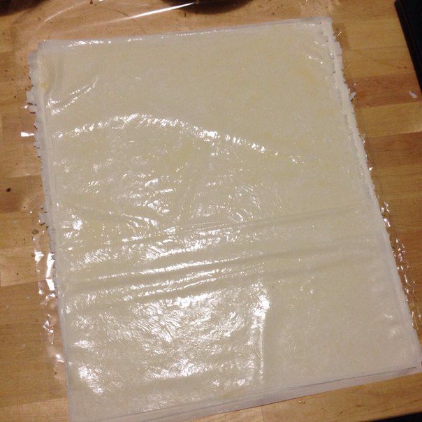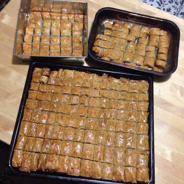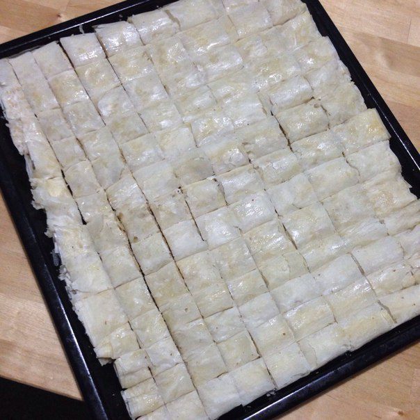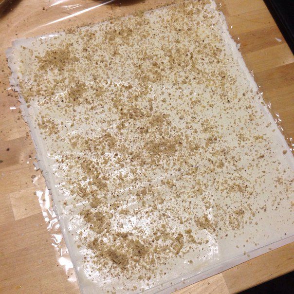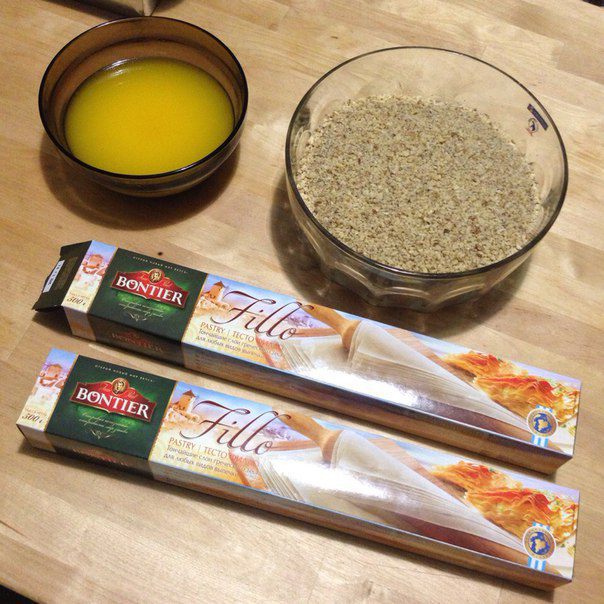 И тогда у вас получится рулет из двух листов теста фило, один будет с маслом и орехами, а второй просто с маслом .