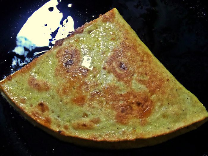 Переворачиваем и жарим снизу. Жарятся очень быстро!