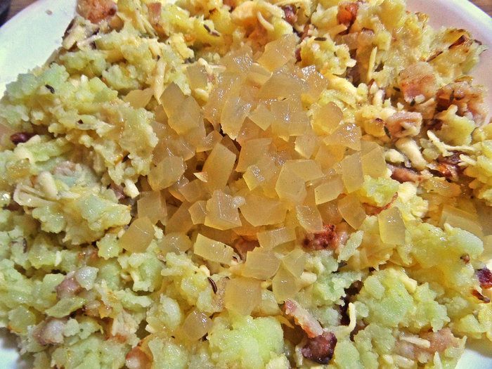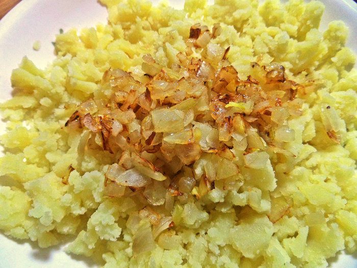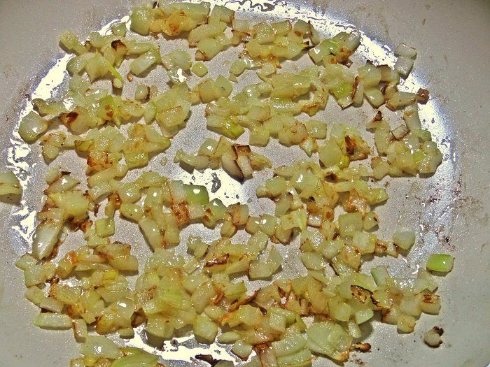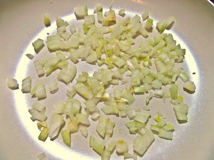 Для начинки луковицу небольшую измельчить.