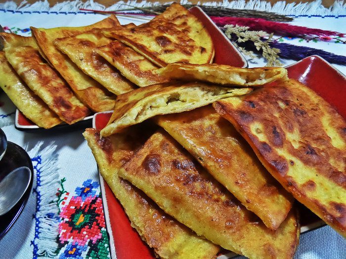 Сегодня у меня по-быстрому, из готовых кукурузных лепёшек, но можно также воспользоваться слоёным тестом от "Сибирского гурмана". Для этого раскатать пласт, нарезать на квадраты и сложить треугольником. Остальное всё по рецепту!