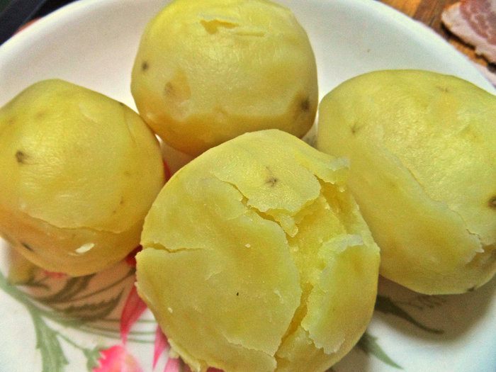 Картофель отварить, можно "в мундирах", остудить.