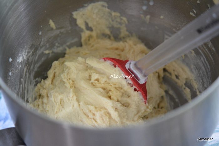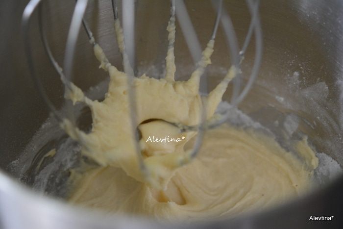 В миксире смешать на средней скорости сахар со сливочным маслом комнатной температуры, примерно 2 минуты. Добавить яйцо, смешать все примерно 1 минуту.