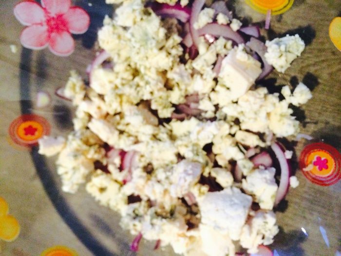 Лук, сыр, тунец положить в салатник.