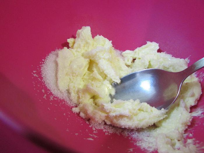 Растереть мягкое сливочное масло с сахаром.