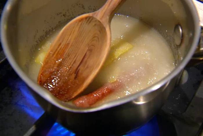 Цедру лимона срезать тонкими полосками, выжать сок из половины лимона.