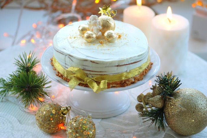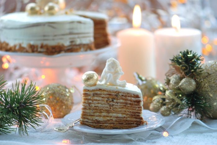 Из теста раскатываем коржи, диаметром 23 см. Накалываем их вилкой и выпекаем в духовке при температуре 190°С 7-10 минут. Обрезки и остатки теста так же выпекаем для украшения торта.