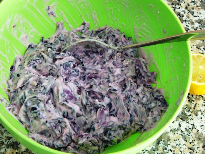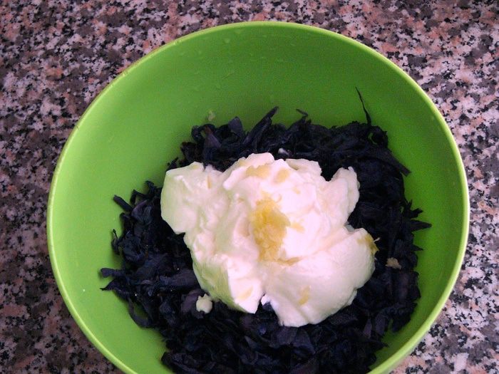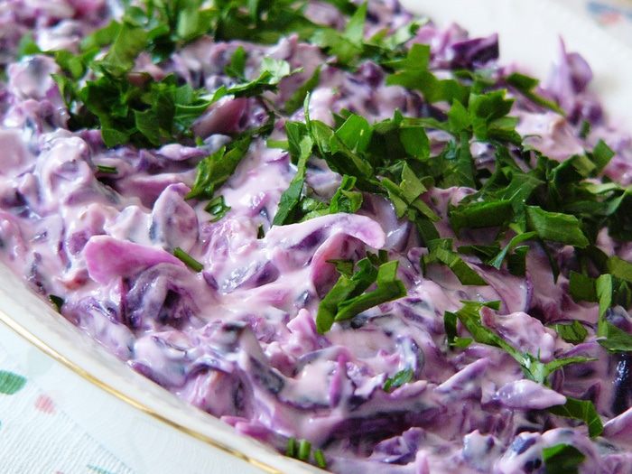 Салат из краснокочанной капусты с йогуртом и чесноком