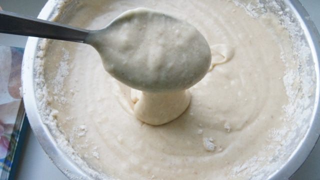 Должно получится вот такое густоватое тесто.