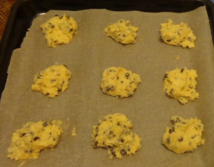 Ложкой выложить тесто на пергамент на расстоянии 3-4 см.