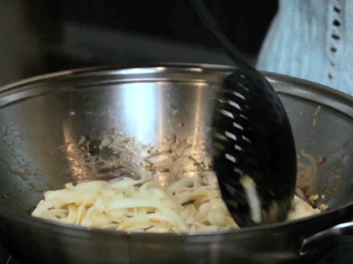 Из второй части сделать соус, добавив к ней бульон.