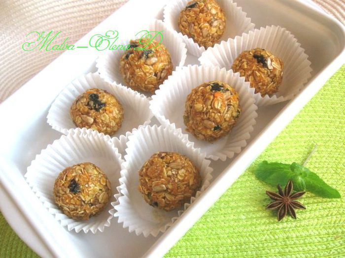 В этих конфетках собрано все самое полезное, что зарядит вас утренней энергией. Из указанного количества у меня получилось семь штук.