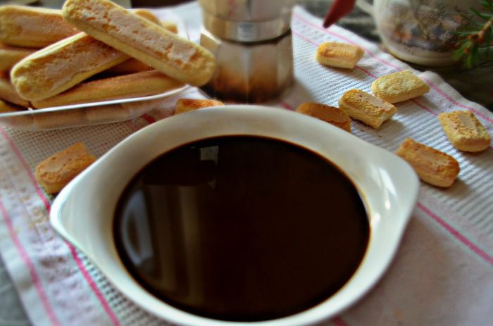 Сварите хороший крепкий кофе, перелейте в плоское блюдо и остудите.