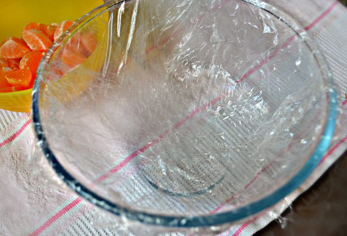 Куполообразную форму смажьте растительным маслом и выстелите пищевой плёнкой.