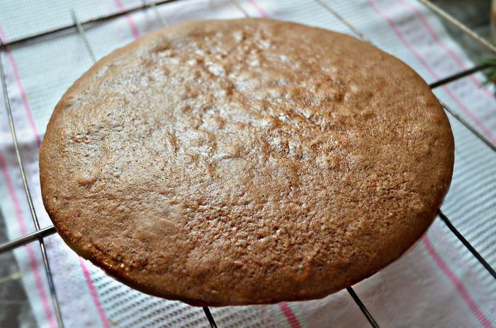Готовому коржу дать остыть на решётке.