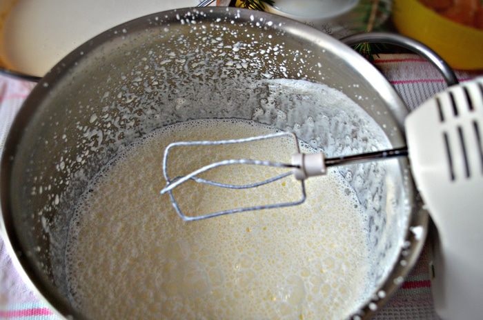Сливки взбить.