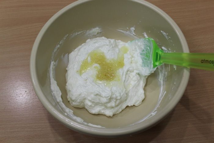 Затем смешать йогурт с лимонной пастой.