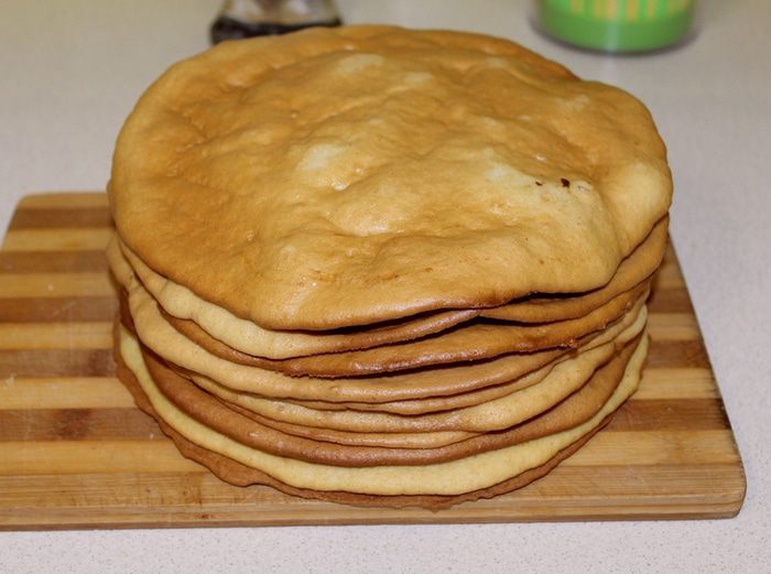 Выпекать коржи 7-10 минут при 180°С, до золотистого цвета.