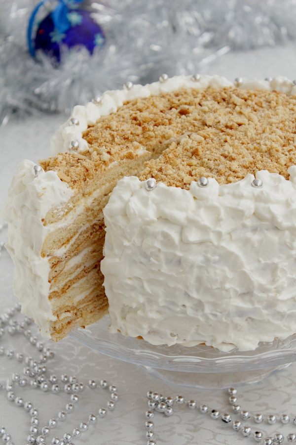 Собрать коржи, промазав их кремом. Украсить торт по желанию и отправить в холодильник на ночь.