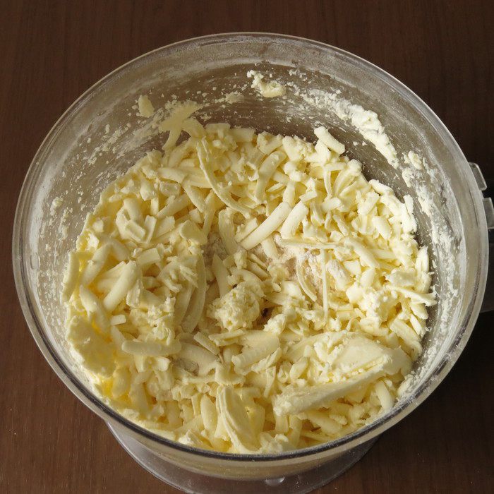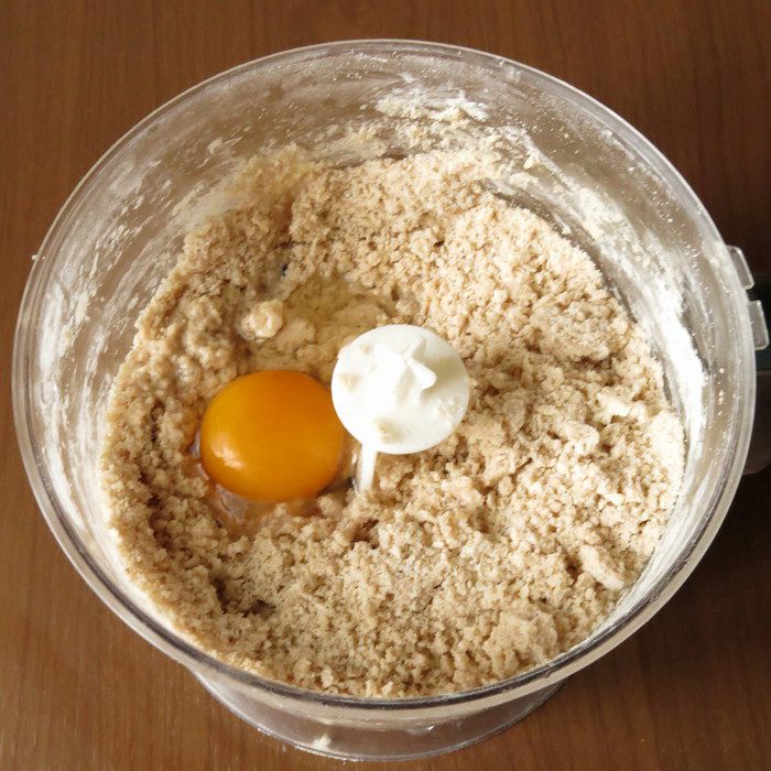 Добавляем нарезанное масло, перемешиваем, с этой задачей прекрасно справится блендер.