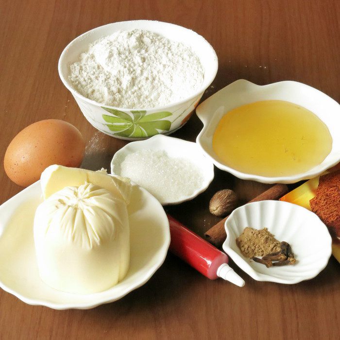 Подготовим муку, масло, сахар, яйцо, разрыхлитель, карандаши сахарные, специи — можно использовать молотые или размолоть самим (по 2 ч. л. имбиря и корицы, 0,5 ч. л. гвоздики, на кончике ножа мускатный орех, соль).