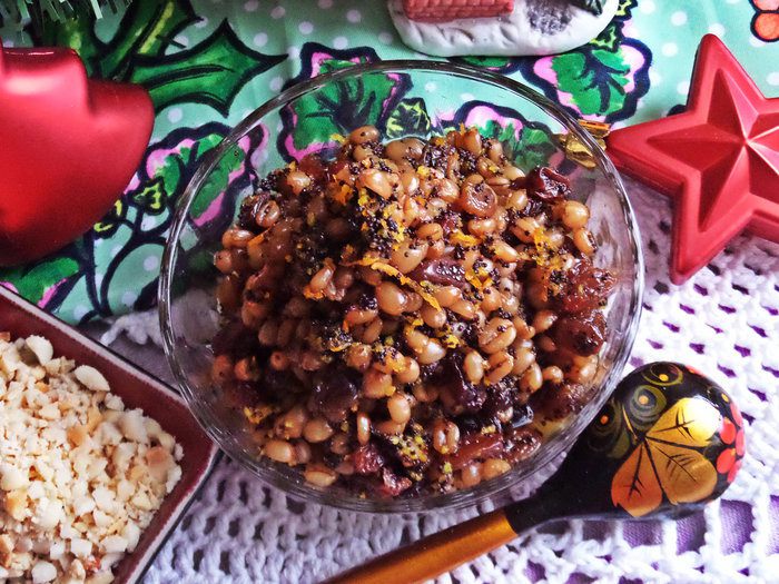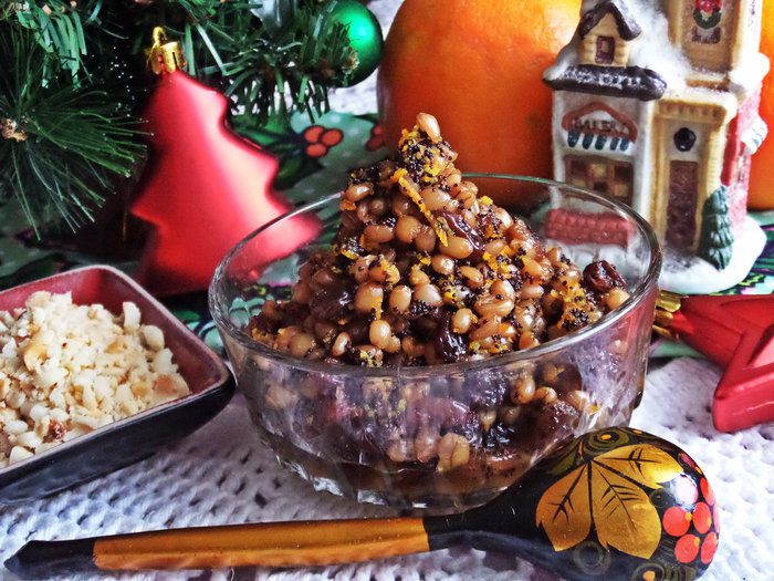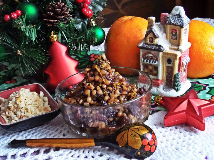 Сегодня угощаю традиционным кушаньем славян в канун Рождества и Крещенья — кашей, сваренной из пшеницы или перловки,сдобренной мёдом, которая называется кутья!