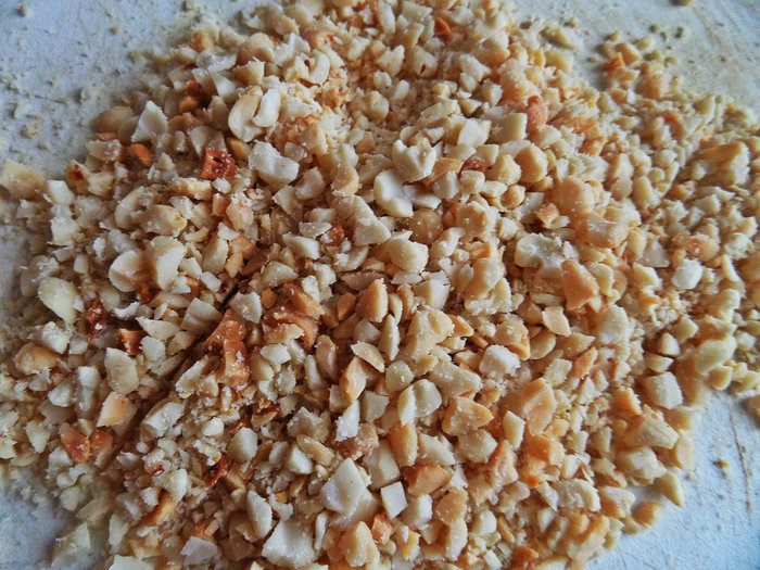 Не забываем про орехи! У меня был обжаренный арахис, порубить его. Если есть, лучше взять грецкий орех.
