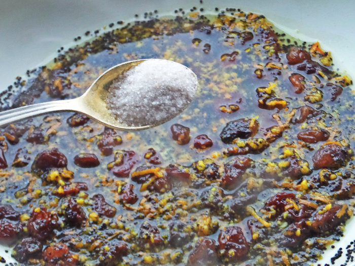 Перемешаем,выключаем огонь и добавим мёд (или сахар).