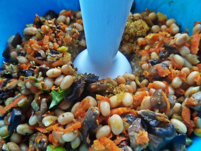 Переложить в ёмкость для взбивания. Взбить блендером в пюре. Паштета получается 500 мл банка.