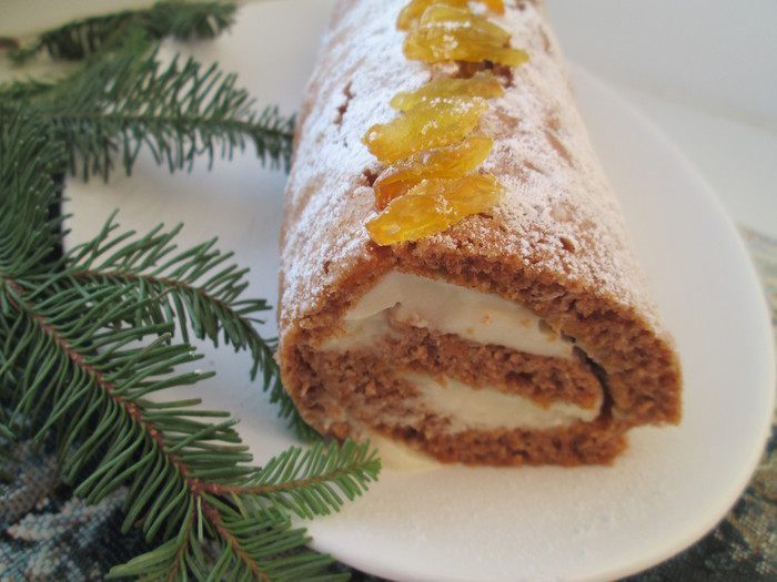 Предлагаю вашему вниманию рождественский рулет. Почему он рождественский? Потому, что у него самые рождественские специи: имбирь, корица, мускатный орех, а еще имбирные цукаты.