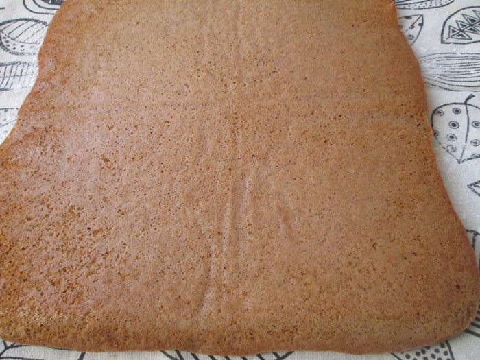 Сразу же сворачиваем его в рулет и остужаем на решетке.