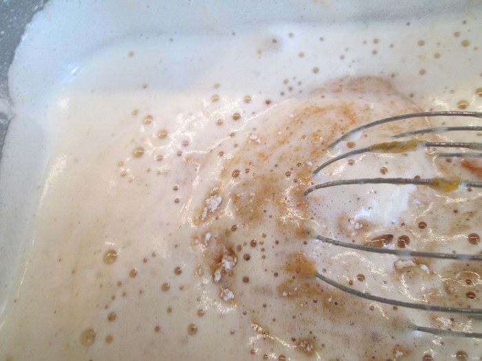 Смешиваем все сухие ингредиенты: муку, разрыхлитель, соду, корицу, имбирный порошок, соль и мускатный орех.