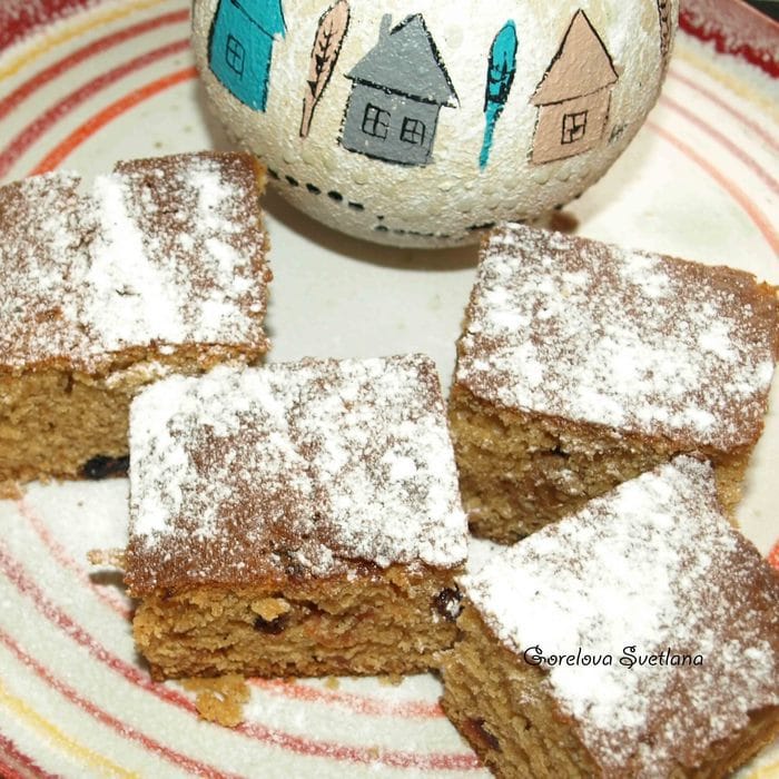 Духовку разогреваем до 170°С. Выливаем тесто в форму (квадратную 20 см) и отправляем на 1 час в духовку. Печем пока коврижка не станет плотной под пальцами. Я еще проверяю на сухую спицу :)