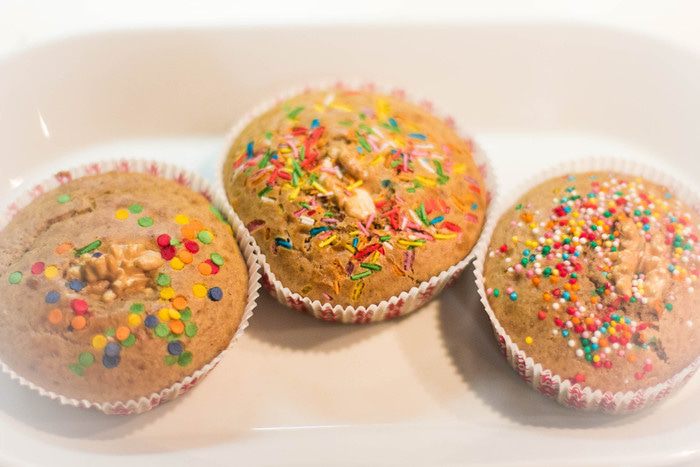Укладываем тесто в формочки. Можно добавить грецкий орех и присыпку как у меня. Можно любой другой орех или изюм или просто какую нибудь ягоду. Тут уж на ваше усмотрение. Духовка на 200°С. Пекутся такие какпкейки очень быстро, минут 10-15. Консистенция мягкая и воздушная. Вкус ореховый, насыщенный.