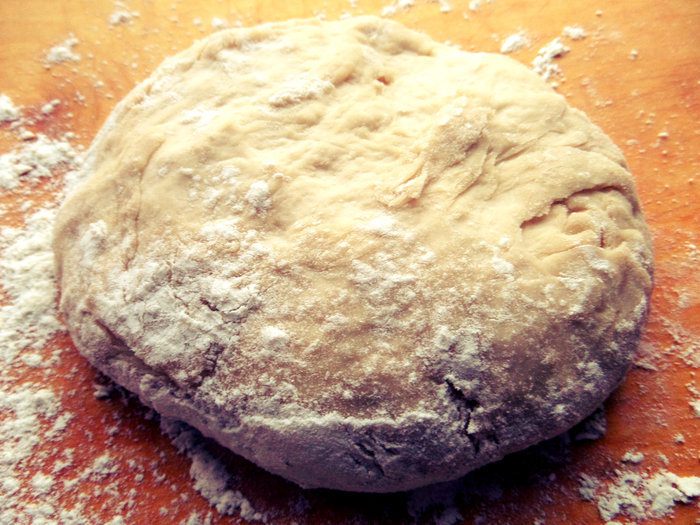 Смешиваем дрожжи в тёплой воде с маслом и солью, всыпаем муку и замешиваем тесто. Накрываем и оставляем в тепле минут на 40.