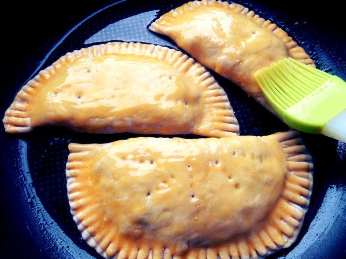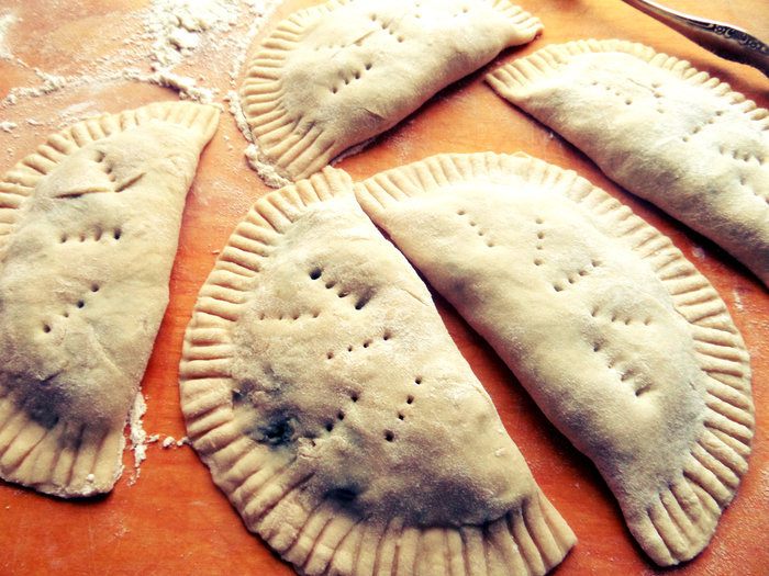 Накрываем второй половиной теста и защипываем при помощи вилки. Верх накалываем тоже вилкой.