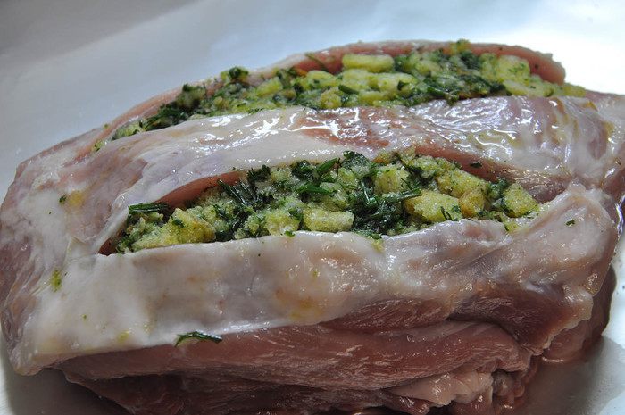 Захотелось кусочек свинины с какой-нибудь вкусной начинкой. Скажем так, начинка превзошла мясо: по ароматным качествам уж точно! :)