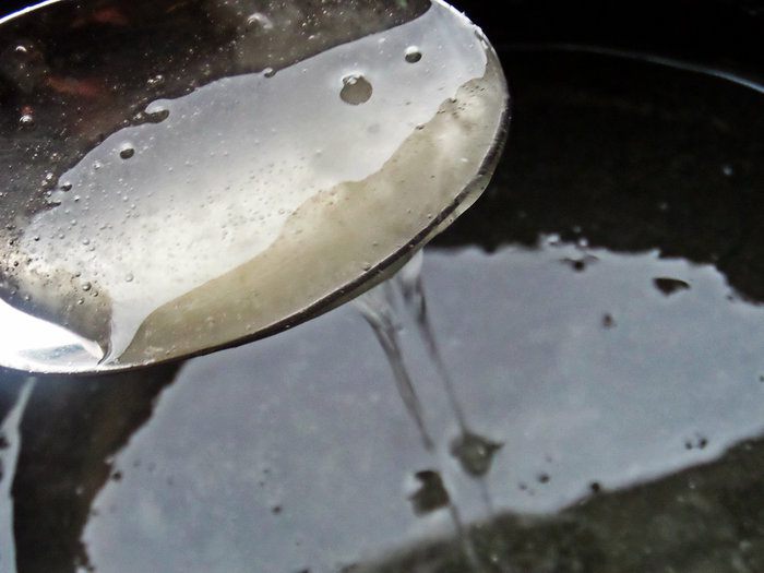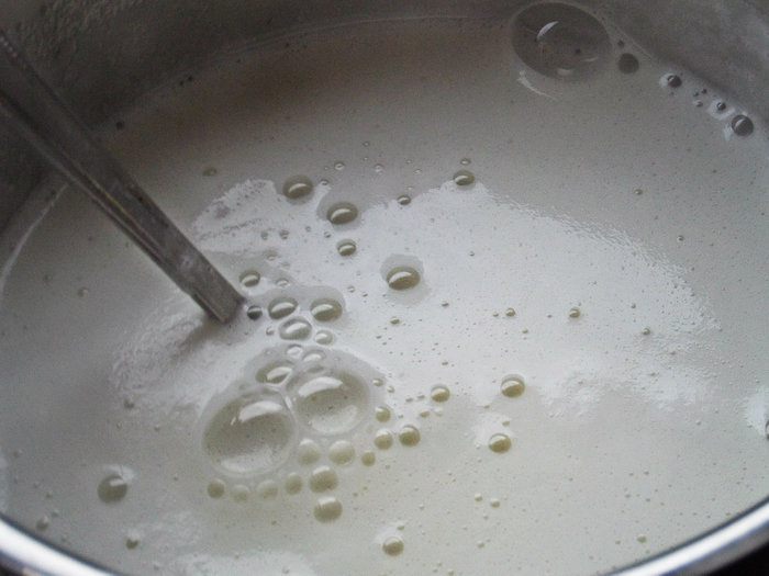 Нагреваем цельное молоко (из порошка не подойдёт), нужно именно топлёное.