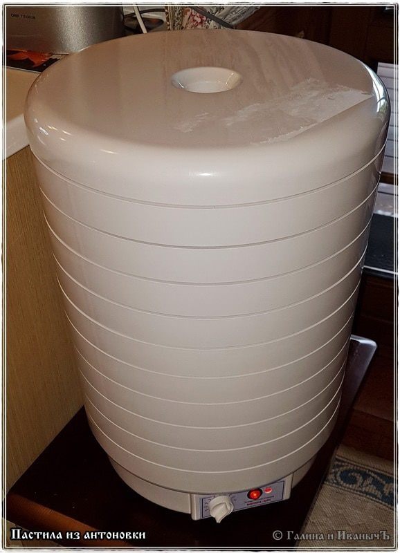 А пока она остынет, поговорим про старые технологии, которые на новый лад. Правильнее было бы процесс продолжить опять-таки в русской печке. Но топить лень. Поэтому использовали мы вот такое устройство. Называется «дегидратор». Но это они там думают, что изобрели что-то сильно новое, а суть то и не поменялась. Восходящие потоки сухого теплого воздуха, как в «вольной печи».