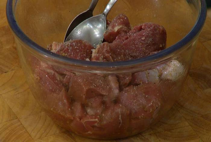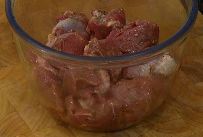 Выложить в маринад мясо, перемешать и дать постоять.