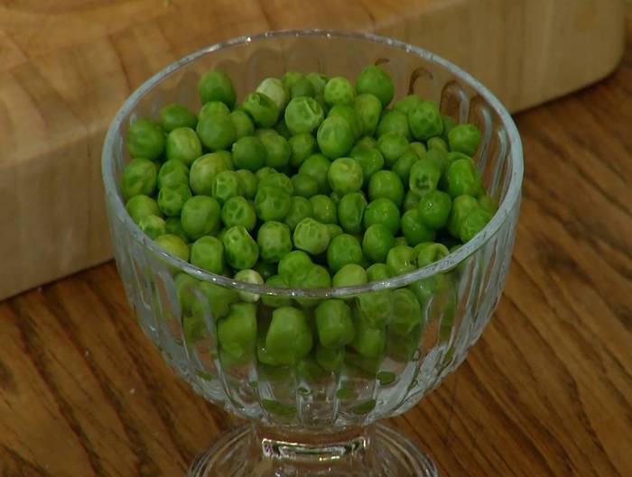 Зеленый горошек отварить в кипящей воде.