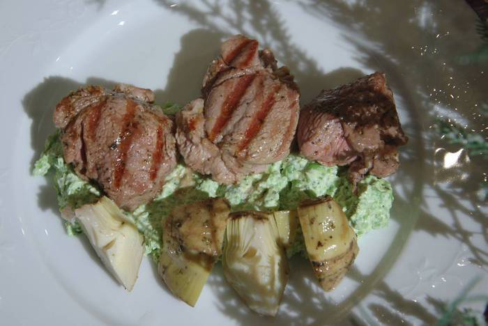 Маринованная ягнятина с артишоками и зеленым горошком