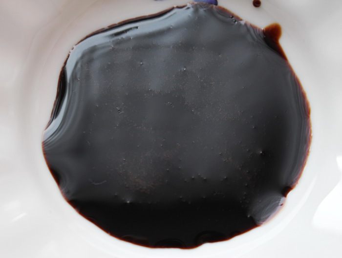 Сделать бальзамический крем (или купить готовый). Сковороду разогреть. Добавить сахар и бальзамический уксус и довести на сильном огне до кипения. Затем огонь уменьшить, смесь выпаривать 5-7 минут. Смесь должна немного загустеть, а на поверхности появятся большие пузырьки. Снять с огня и остудить.