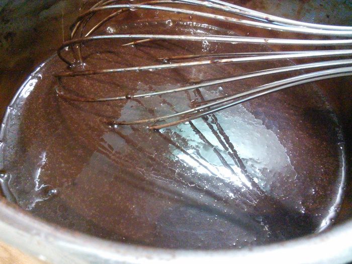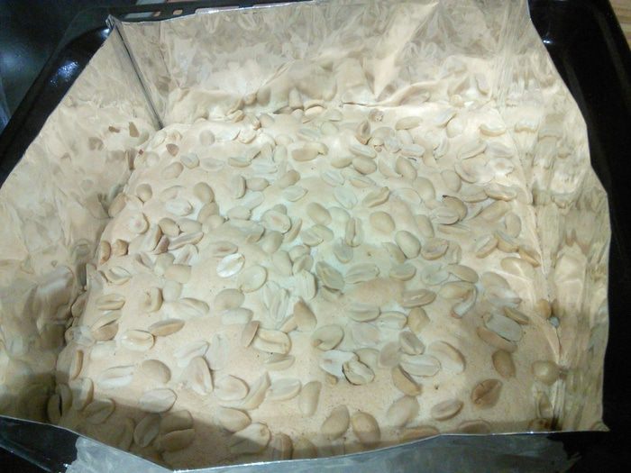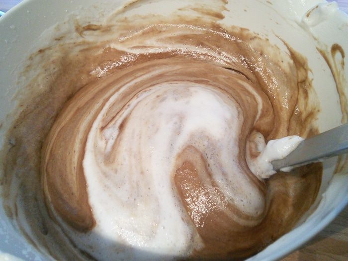 Теперь нужно взбить белки до мягких пиков, постепенно ввести сахар и довести белки до густой, стойкой пены. Теперь если у вас есть желатин быстрого действия, то самое время его интенсивно ввести в белки. Но если, как и у меня ваш желатин обыкновенный, то его нужно замочить в 2-3 ст. л. холодной воды до набухания, потом разогреть на минимальных градусах до жидкого состояния.