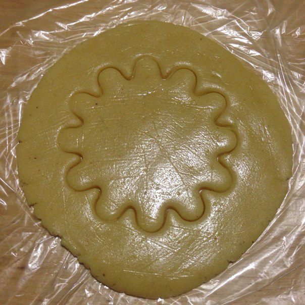 С помощью формочек вырезаем из теста будущее печенье.
