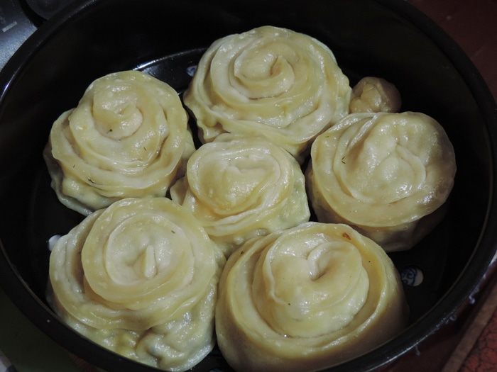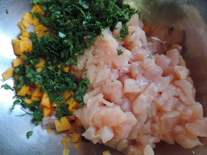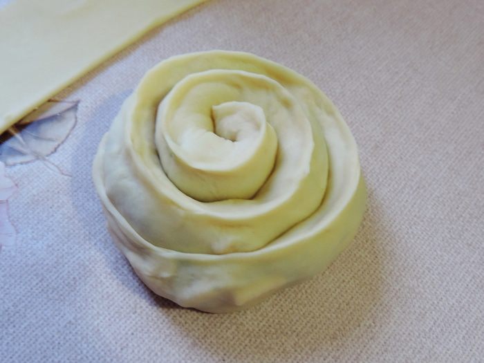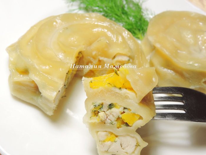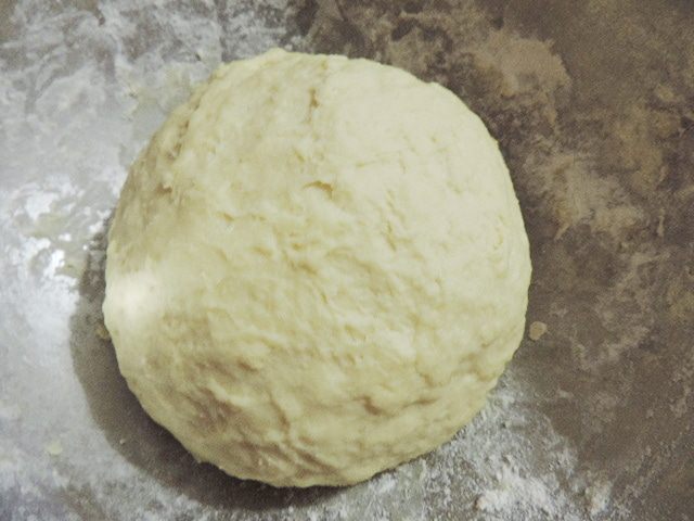Итак, яйцо слегка взбить вилкой с солью (чайная ложка без верха), размешать с молоком и водой, всыпать половину муки и добавить растительное масло. Перемешать до однородности. Понемногу добавить остальную муку. Тесто получается послушным, не липнет к рукам. Собираем его в шар, заворачиваем в пищевую пленку и оставляем на полчаса.