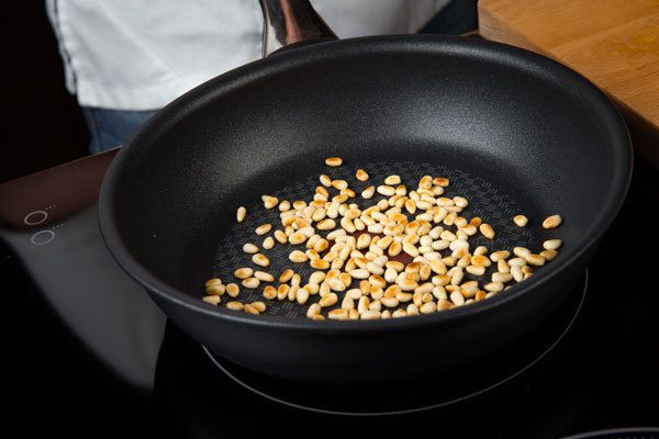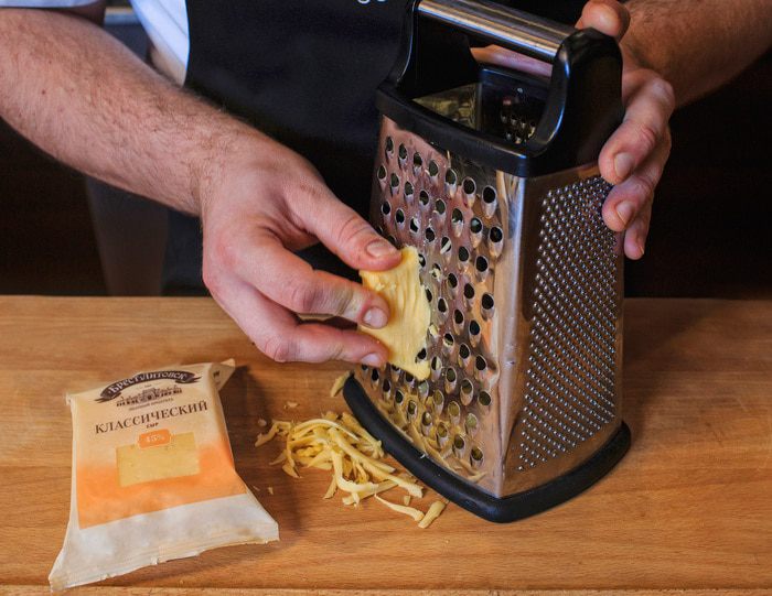 Сыр натереть на мелкой терке. Для приготовления соуса песто отлично подойдет твердый сыр "Брест-Литовск".